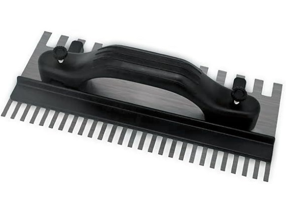 A estrutura Bidentada é ideal para uma aplicação precisa e uniforme de argamassa, cimento, gesso e outros revestimentos. Os dentes são projetados para criar um padrão de aplicação consistente, essencial para um acabamento perfeito e livre de bolhas ou marcas.